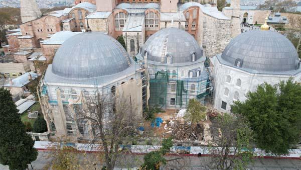 Sarı, “Bu gibi restorasyonlarda önce anıt eserin dışını konsolide etmeniz, restore etmeniz lazım. İçinde istediğiniz kadar restorasyon yapın, çatısından su alan bir yere hiçbir şey yapamazsınız. Önce kubbelerin kurşun ve çimento esaslı sıvaları anıt eserden uzaklaştırarak dış cephesini konsolide edeceğiz, ondan sonra peyderpey zannediyorum üçüncü aşama olarak da anıt eserin içine girilecek. Anıt eserde rutubet var. Yoğun bir ziyaretçi akını var, bunu inkar etmemiz lazım. Yoğun bir ziyaretçi akımının sağladığı bir rutubetli ortam söz konusu oluyor çünkü insan nefesinin de ortama çok büyük bir rutubet bıraktığını biliyoruz. Bunlarla ilgili olarak da çalışmalar yapılıyor” ifadelerini kullandı.