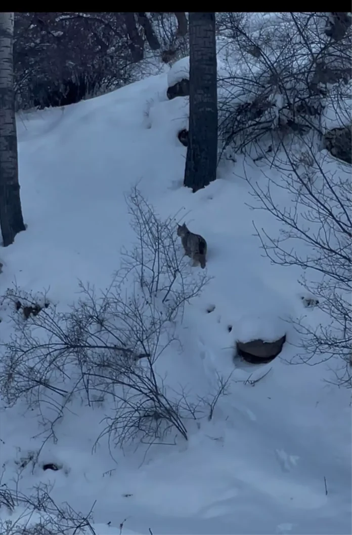 Sivas’ın Suşehri ilçesinde etkili olan kar yağışının ardından yiyecek bulamayan bir vaşak, kara yolu kenarında görüntülendi. Vaşak, besin arayışının ardından dağlık alana geri döndü.