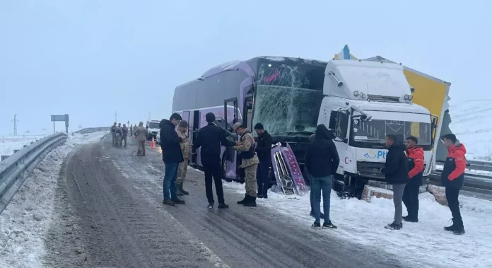 Kaza, Sarıkamış ilçesi Karakurt mevkisinde meydana geldi. Emre Can A.’nın kullandığı 06 EE 0189 plakalı kargo kamyonu, kar yağışı nedeniyle kayganlaşan yolda kontrolden çıktı. Kamyon refüje çarparak durdu. Bu sırada seyreden Mehmet Zülküf Ç.’nin kullandığı 23 AEV 640 plakalı yolcu otobüsü, kamyona çarptı. Bölgeye, AFAD, sağlık ve jandarma ekipleri sevk edildi. Kazada yaralanan 9 kişi, ambulanslarla çevredeki hastanelere kaldırıldı. Kaza nedeniyle kara yolunda ulaşım kontrollü sağlanıyor.